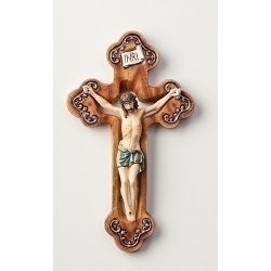 Wood - Look Budded Crucifix by Roman Inc. 10"H