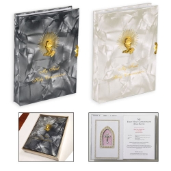 Sterling Silver Heart Shaped Miraculous Medal $35.00 |  New American Bible Revised Edition in White $44.00 |  New American Bible Revised Edition in Black $54.95 |  First Communion Holy Water Font In White Alabaster $25.00 |