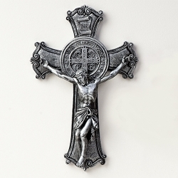 St. Benedict Ornate Silver/Gold Tone Wall Crucifix