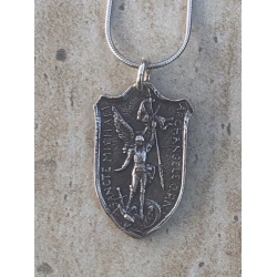 St Michael Shield Medal in Sterling Silver $25.00 |  St. Michael and St. Christopher Protection Medal $25.00 |  St. Benedict Sterling Silver Medal on 22" Chain $35.00 |  Archangel Michael Armor of Protection Key Ring $25.00 |