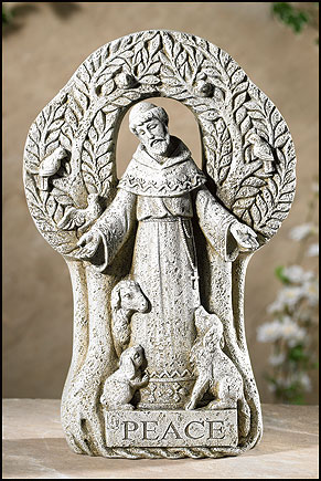 ***ON BACKORDER UNTIL SEPT. 30, 2020 Saint Francis Peace Tree Outdoor Garden Statue is perfect for indoors too. May this inspirational statue be an instrument of peace in your home or garden. Resin -- 8" W x 3" D x 12.5" H,