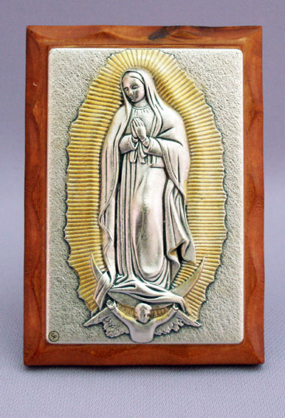 Our Lady of Guadalupe metal on wood plaque, 3x4". ********* Made in Italy ******* Item ships for $3.00 to Continental US. Please inquire for shipping charges to Alaska, Hawaii & International.