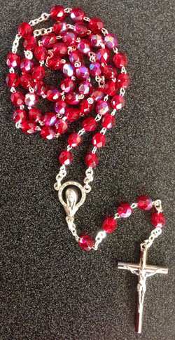 Ruby glass rosary, 6mm bead, 16". ******** Made in Italy **********. Item ships for $3.00 to Continental US. Please inquire for shipping charges to Alaska, Hawaii & International.