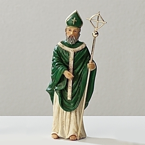 Collectible miniature statue of St.Patrick is packaged in a unique gift box that has a short biography and prayer to the saint on the outside of the box. Inside the box is the statue and prayer card. Patron of Ireland. Great gift for Confirmation, and of course, St Patrick's Day!!! Stone/Resin Mix