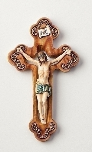 Lovely, detailed budded Crucifix with Woodgrain look. 10" High. Ready to hang.