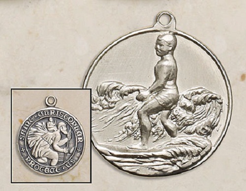 St. Christopher Sterling Silver Longboard Surfer M
