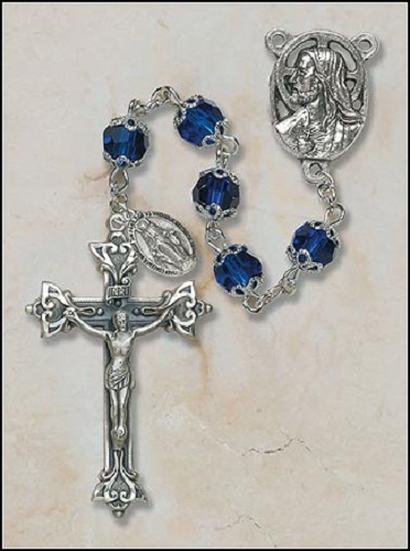 Sacred Heart Rosary w/ Sapphire Crystal Beadss