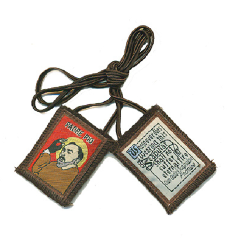 This is a traditional "Padre Pio" Brown Scapular made of 100% wool. It bears the image of PAdre Pio. You must be enrolled in the Brown Scapular by any priest to obtain all the promises associated with wearing it faithfully. This scapular also has a crucifix medal and St. Benedict medal attached. I call these my "Industrial Strength Scapulars" because of their durability and longevity! Please indicate white or brown cord when ordering or by message.
