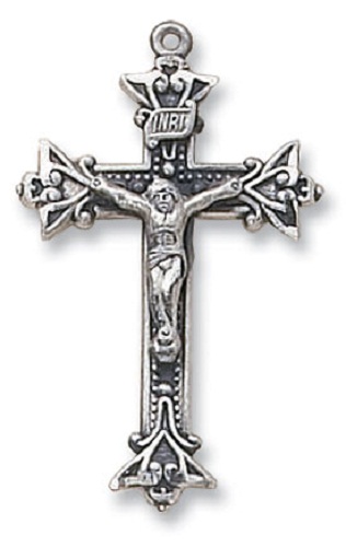 1.25"H Crucifix on 18"L Rhodium Steel Chain