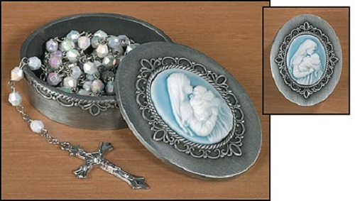 Madonna and Child "Mother's Kiss" Cameo Rosary Box