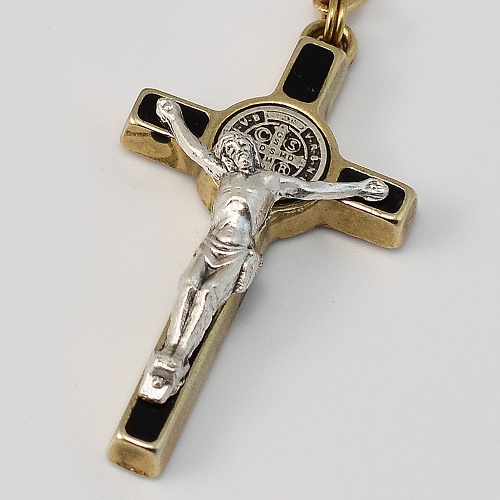 St. Benedict Gold Plated Rosary w/ Black Wood Bead