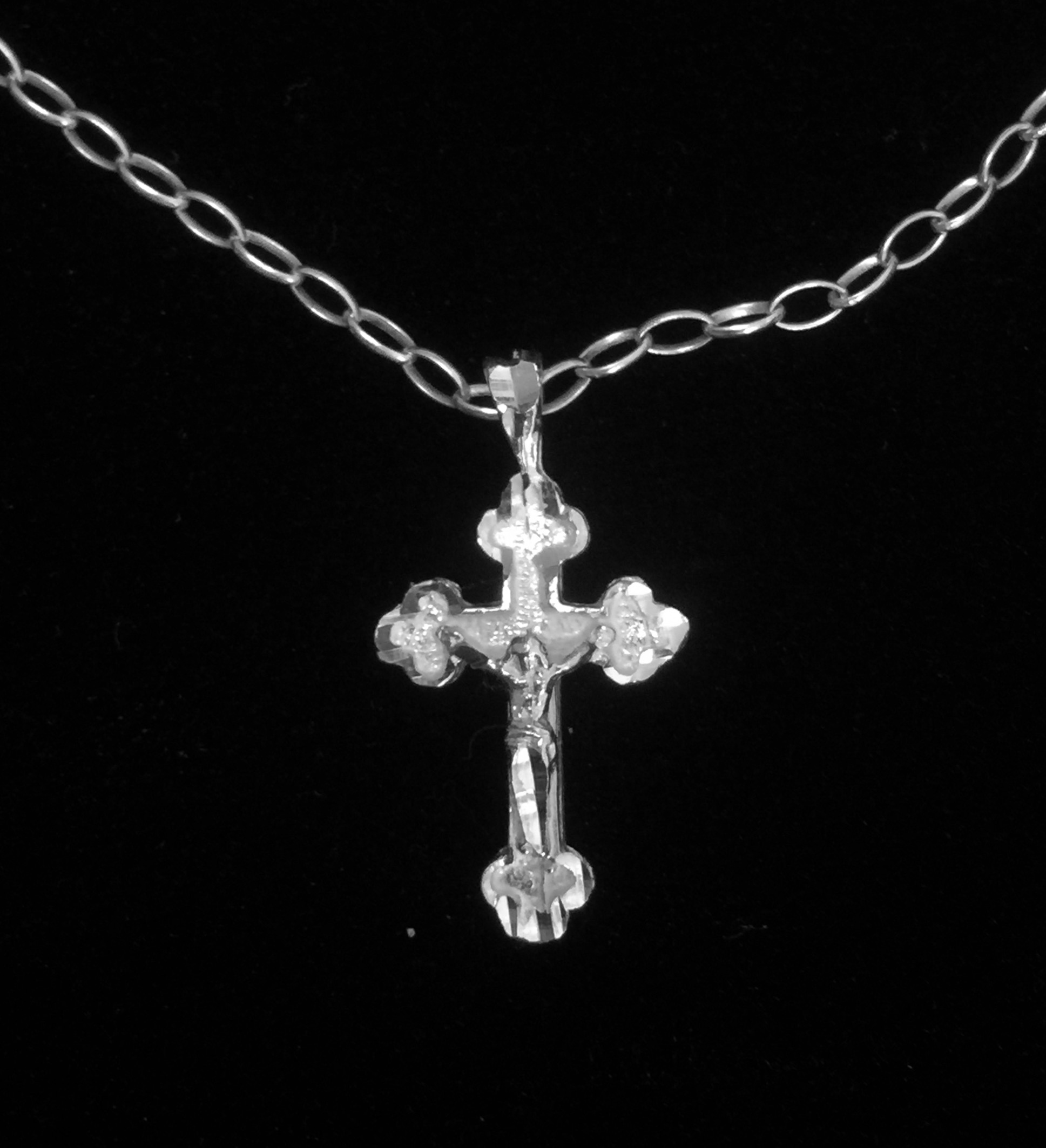 Beautiful Crucifix on large open loop 16" chain, all Sterling Silver. Nice for First Holy Communion, Confirmation, even nice for an adult. 3/4" Crucifix with 1" drop. Other chain styles and lengths are available, please call or email for options and pricing. Price includes shipping.