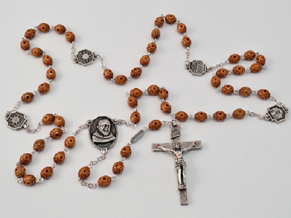 St. Pio of Pietrelcina Brown Wood Bead Rosary