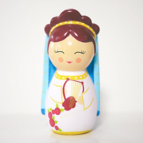 Meet St. Cecilia! St. Cecilia is the patron saint of church music, musicians, and poets. This adorable vinyl collectible figure is the perfect gift, and a fantastic way to begin introducing your children (or your friends!) to the fascinating and inspiring world of Christian Saints. Included in the box is a fun and educational insert; learn some fun facts about St. Cecilia, a prayer for her Feast day, and information about her life. Each doll is made of high quality rotocasted vinyl; which means nothing moves, breaks or falls off! The dolls have been safety tested and approved for children of all ages (zero to 100!) Measuring at slightly over 3.5 inches- this little figure is a perfect fit for a child's hand, and makes an adorable addition to a desk or nightstand. Shining Light dolls are also great hospital gifts; easy to clean, light and unbreakable, a cheerful reminder of our family in heaven! A fantastic blend of new and old, these dolls are a great way to introduce your love ones to the beauty and depth of the Christian faith! Shining Light Dolls are our friends for the journey, little lights to the world! For children, and the young at heart! Shining Light Dolls donates 10% of all profits to charity. Safe for children, toddlers and babies of all ages- from zero to 100! A fun and faithful gift for children and adults alike! The Saints are our friends and family in heaven! Shining Light Dolls LLC is dedicated to bringing high quality vinyl religious dolls to children of all ages! At Shining Light Dolls, we believe children deserve to have beautiful toys with a contemporary aesthetic and meaningful message. All Saint styles come securely packaged in a lovely sky blue box which features all of the styles on the back. Each doll is made of a single piece of rotocasted vinyl; that means no removable parts, no moving parts, no noise and nothing to break. When subjected to the highest child safety standard testing, our dolls pass with flying colors. As an example, �Saint Joseph� �Saint Therese of Lisieux� �Saint Francis of Assisi� and �Saint Patrick� have been approved for children 0-36 months, meaning the dolls are safe for any infant, toddle or child! Eye catching colors and contemporary designs are screen printed onto the dolls using high quality lead and phthalate free paints. All of the Saints come in the same size packaging for ease of display and storage: boxes are roughly 3� x 3� x 5�. Shining Light Dolls LLC was founded in 2012 and is a small, Catholic owned family business. Dedicated to bringing the powerful message of the Saints and Virgin Mary to children (of all ages!), Shining Light Dolls believes it is important to present their message with a respectful, contemporary aesthetic that is attractive to today�s child. High quality design that is affordable, durable and quiet; Shining Light Dolls are a refreshing new way to share the lives of the Saints with our children, our friends, and even ourselves! Whether sitting on a desk, clutched in a toddler�s hand, or given to a niece at Christmas or a nephew for his first Holy Communion; to give the gift of a Shining Light Doll is the gift of a positive role model, a hero, an example of a Christ-centered life