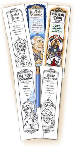 This Mini Catholic Bookmark set contains 15 assorted bookmarks in 5 different designs. They are printed on extra-heavy cardstock for great durability and come ready to be colored with paints, crayons or markers. Each set contains an assortment of 5 different designs and measure 5" x 1"