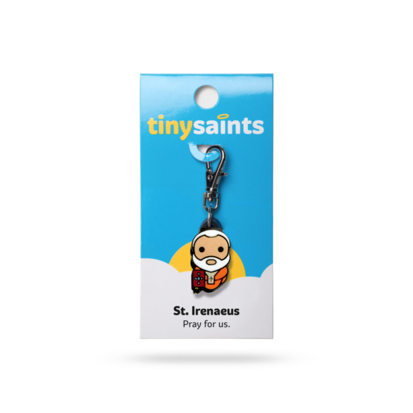St. Irenaeus was born around the year 125 A.D. His passion for spreading the true Christian message - grounded in Scripture and passed down through the Apostles - made him a hero in the fight against false teachings. These teachings, called Gnosticism, were rampant in the early centuries. Irenaeus used the metaphor that an imitation jewel should be exposed when closer examination can prove that it is not authentic! For that reason, Irenaeus is often shown holding Scripture with a true jewel depicted on the cover. Patron of: apologists, catechists, jewelers