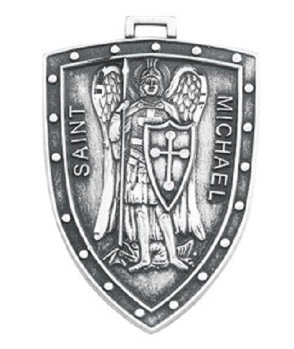 Saint Michael Sterling Silver Shield Medal 7/8"
