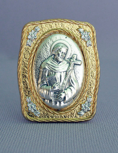 Beautiful " St. Francis Medal" Miniature Standing Plaque Highly Detailed Image St. Francis of Assisi Holding Crucifix Gold Tone Finish with White Enamel Trim 1.5" x 1.75"H Made in Italy Boxed Perfect Keepsake Gift for Baptism, Confirmation, RCIA Great little gift for Religious Ed teacher Perfect Stocking or Basket Stuffer