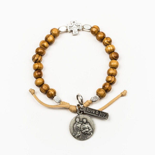 ROOTED IN FAITH With deep roots and solid faith, we are born to reach new heights, to claim our power and strength so that we may withstand the changing winds. Wear this bracelet as a reminder of your inner strength as you stand tall and be who you were born to be! You are supported, you are loved and you are surrounded by angels and saints. For Men and Women. Adjustable cording which opens to 9.5" diameter. Handwoven in Medjugorje, Bosnia and Herzegovina. Silver tone cross medal, 20 olive wood beads, 4 silver tone beads and a silver tone "I AM love & joy" virtue tag. Silver tone Saint Raphael medal. Medals made in Italy. With an inspirational card.