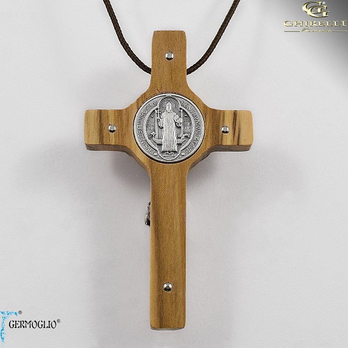 Beautiful Saint Benedict Crucifix made exclusively in Italy by Germoglio. Each Crucifix is crafted by trained artisans, with careful attention to every detail and component during the hand-assembling process. What makes Germoglio’s Saint Benedict Crucifix and Wall Crosses far superior to others? >> They were the first company in Italy to produce and market to the world the famous Saint Benedict Medal/Crucifix and Cross >> Each Saint Benedict Medal is individually cast with its respective inscriptions and images -- not fused to the cross -- in accordance to the guidelines established by the authoritative Church >> Each Corpus/Body of Christ is actually hand nailed to the surface of the Cross >> Each Corpus/Body of Christ and Saint Benedict Medal are cast in Brass and then plated >> This particular Wall Cross is made from genuine Italian Olivewood The Crucifix Pendant measures approximately 4 3/4" tall X 2 1/2" wide.