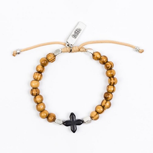 Grounded in Faith Olive Wood Bracelet~ Black Cross