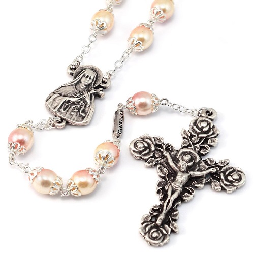 ST.THERESE BLUSH & SILVER ROSES ROSARY