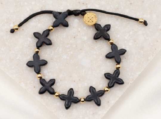 GROUNDED IN FAITH The cross signifies God’s greatest act of love; bringing forgiveness, healing, and hope to the world. Wear this Grounded in Faith Bracelet as a reminder to keep God at the center of your life and know that He is protecting and loving you always. Handwoven in Medjugorje, Bosnia, and Herzegovina Adjustable bracelet cording which opens to 9.5" diameter, closes to 6.25" 9 Howlite-based crosses with a silver or gold-tone My Saint My Hero logo medal, silver or gold-tone beads, and a "faith" charm tag Medals hand-cast in a sacred site in Italy Grounded in Faith Blessing Bracelets come on an inspirational card