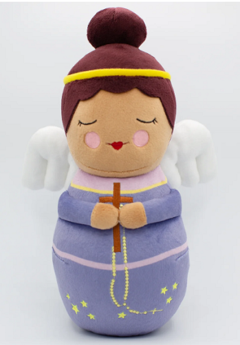 Meet a Guardian Angel Plush! “Beside each believer stands an Angel as protector and shepherd, leading him to life.”- St. Basil the Great The latest Shining Light Dolls Plushes have arrived and they are even cuter than we imagined! Handcrafted from the softest plush we could find, this Guardian Angel plush is sure to become your little one's favorite companion! God lovingly gives us each a heavenly companion for our journeys here on Earth, a guardian angel to be with us always. Our Angel is holding a cross and rosary, reminders of Jesus and His Blessed Mother. Gorgeous embroidery details on the face, rosary, cross and stars make this piece even more of a treasure. This angel is dressed in pink and blue, while "holding" an embroidered rosary and cross. The Guardian Angel comes tagged, ready for gifting (if you can manage to let her go!) Plush material is surface washable. Each doll made lovingly by hand. Due to the handmade nature of this doll some slight variation may occur. Heights vary by style between 9-12 inches. safe + non-toxic: US + Canadian safety standard certified